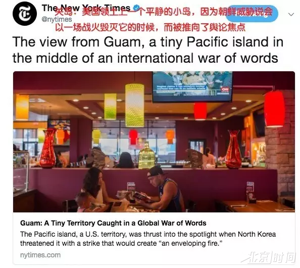 此外,没有任何悬念,作为美国最擅长写feature(特稿)的主流媒之一,《》又给关岛这个地方做了一个充满悲情和诗意的特稿,以此来证明特朗普的愚蠢——