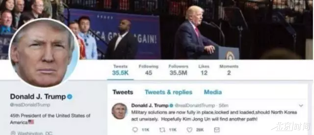 特总统的最新推特:如果朝鲜作出不明智的选择,美国军队已经“装弹上膛准备开火”(locked and loaded)